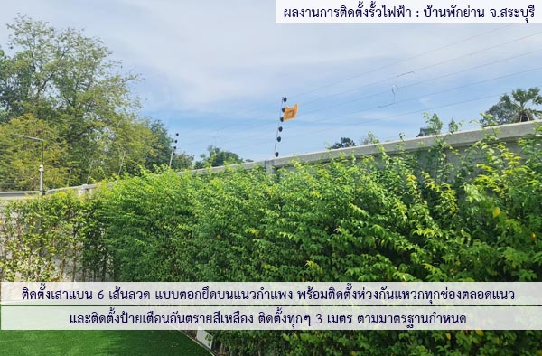 บ้านพักย่านจังหวัดสระบุรี ระยะความยาวที่ติด 118 เมตร จำนวนลวดไฟฟ้า 6 เส้น